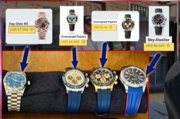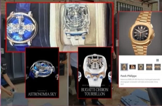 Entre las piezas mencionadas se encuentran relojes con valores estimados de 1,5 millones, 750 mil y 250 mil dólares, además de otros cuatro de la marca Rolex.